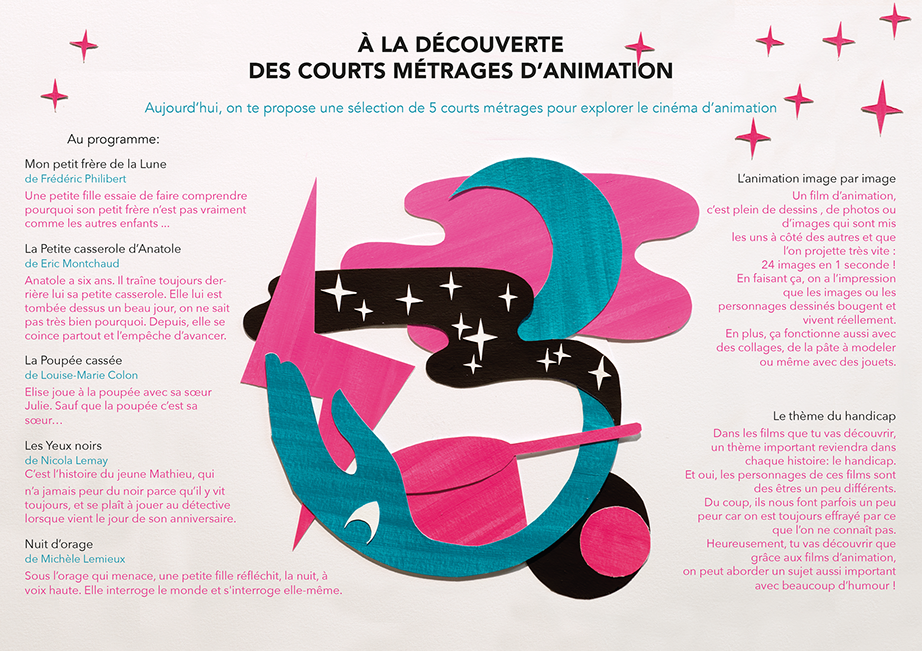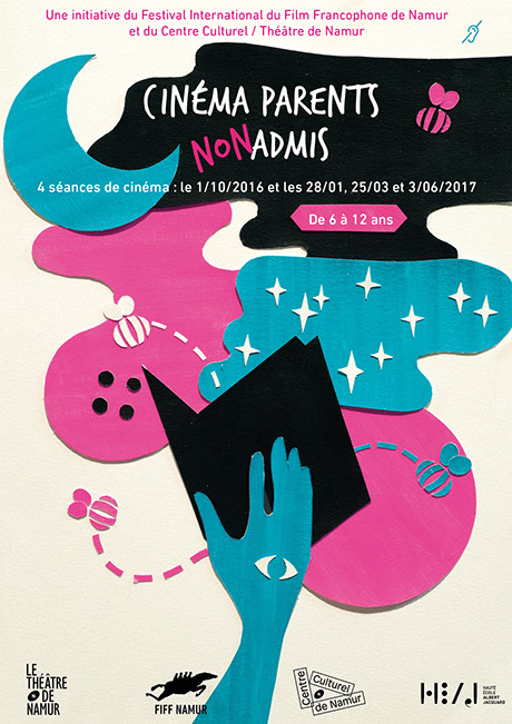 FIFF Folder réalisé dans le cadre des séances "Cinéma parents non-admis" (en collaboration avec le FIFF), textes et 4ème de couverture imposés. Folders made in in the context of "Cinema No-Parents Allowed" (in collaboration whit the FIFF), text and fourth cover imposed.