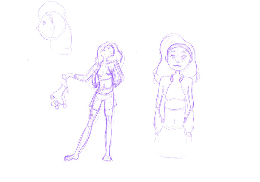 Suzy Croquis et modelsheet d'un personnage fictif. Drawing and model sheet of a fictional character.